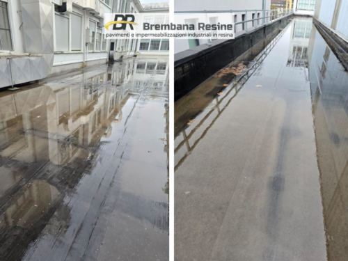 La zona comprendeva anche un’area a effetto vasca, soggetta a un deposito continuo di acqua piovana, particolarmente critica dal punto di vista dell’impermeabilizzazione.